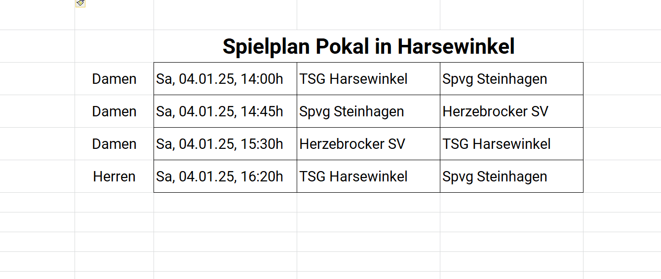 Davor spielen unsere Damen im Turnier - Spielzeit einmal 20 Minuten - gegen Spvg Steinhagen Anwurf 14:00 Uhr und