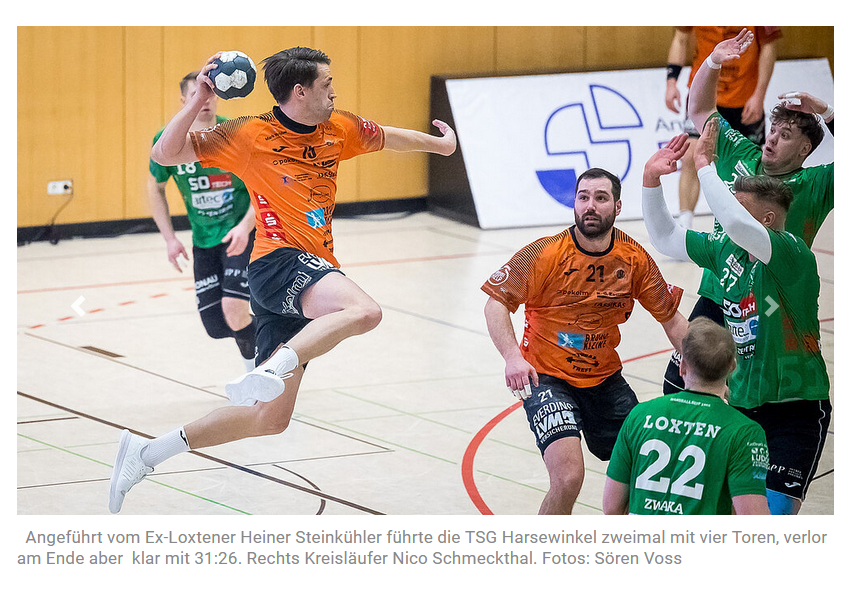 Die sollte sich von der zweiten Derbypleite nach der 31:35-Hinspielniederlage nicht umwerfen lassen. Für Handball-Harsewinkel, das von bis zu 200 Fans hervorragend unterstützt wurde, geht es in den ausstehenden neun Partien dieser Saison vor allem darum, nicht in untere Abstiegsregionen abzurutschen. Dass die mit finanziellen Abstrichen in die Serie gestarteten Loxtener seit August einen großen Schritt nach vorn auch in Sachen Etat gemacht haben, zeigt die Verpflichtung von Drittligaspieler Florian Schöße, zu dem zuvor wohl auch die TSG ihre Fühler ausgestreckt hatte. Doch zurück aufs Spielfeld.