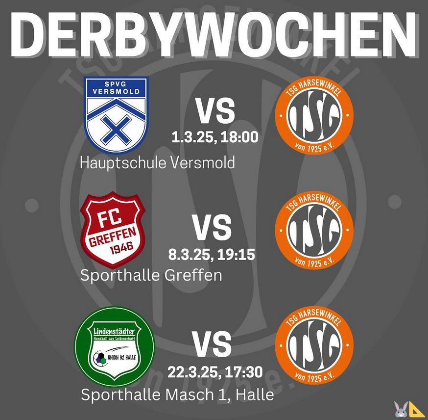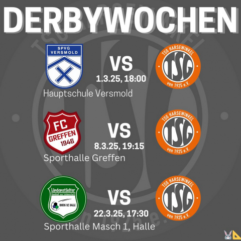 Für uns heißt es jetzt nach vorne Blicken, denn die nächsten Wochen heißt es für uns gleich dreimal Derby. Bereits nächsten Samstag, am Karnevalssamstag(!), müssen wir um 18:00 in Versmold ran. Aus dem Heimspiel haben wir noch eine Rechnung offen und sind, auch wegen des Spieltermines, heiß auf das Spiel.