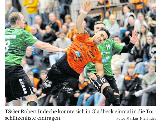 Regionalligist TSG Harsewinkel gibt sich beim Rangdritten VfL Gladbeck erst nach harter Gegenwehr mit 31:35 geschlagen.