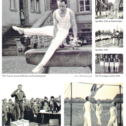 Nur kurz werden in der Festschrift die Kriegsjahre angerissen. 1933 wurden alle DJK-Sportvereine im Land aufgelöst. Nach 1933 wurden die DJK-Sportler in den Turnverein deutsche Turnerschaft Harsewinkel unter dem Vereinsnamen „Turn- und Sportverein Harsewinkel“ aufgenommen. Der Name gilt bis heute.