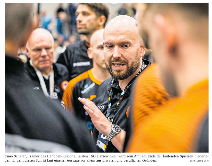 Bei Handball-Regionalligist TSG Harsewinkel steht zur kommenden Saison ein Trainerwechsel bevor. Am Dienstagmorgen verkündete Timo Schäfer, Coach der TSG, via Instagram, dass er sein Amt als TSG-Trainer nach der laufenden Saison abgeben werde. „Diese Entscheidung ist mir alles andere als leicht gefallen und ist für mich sehr schwer – allerdings hat sie vor allen Dingen private, aber auch berufliche Gründe“, schrieb Schäfer in seiner ausführlichen Mitteilung. Wie Teammanager Karlheinz Kalze verriet, soll der Nachfolger für Schäfer bereits in den nächsten Tagen feststehen.
