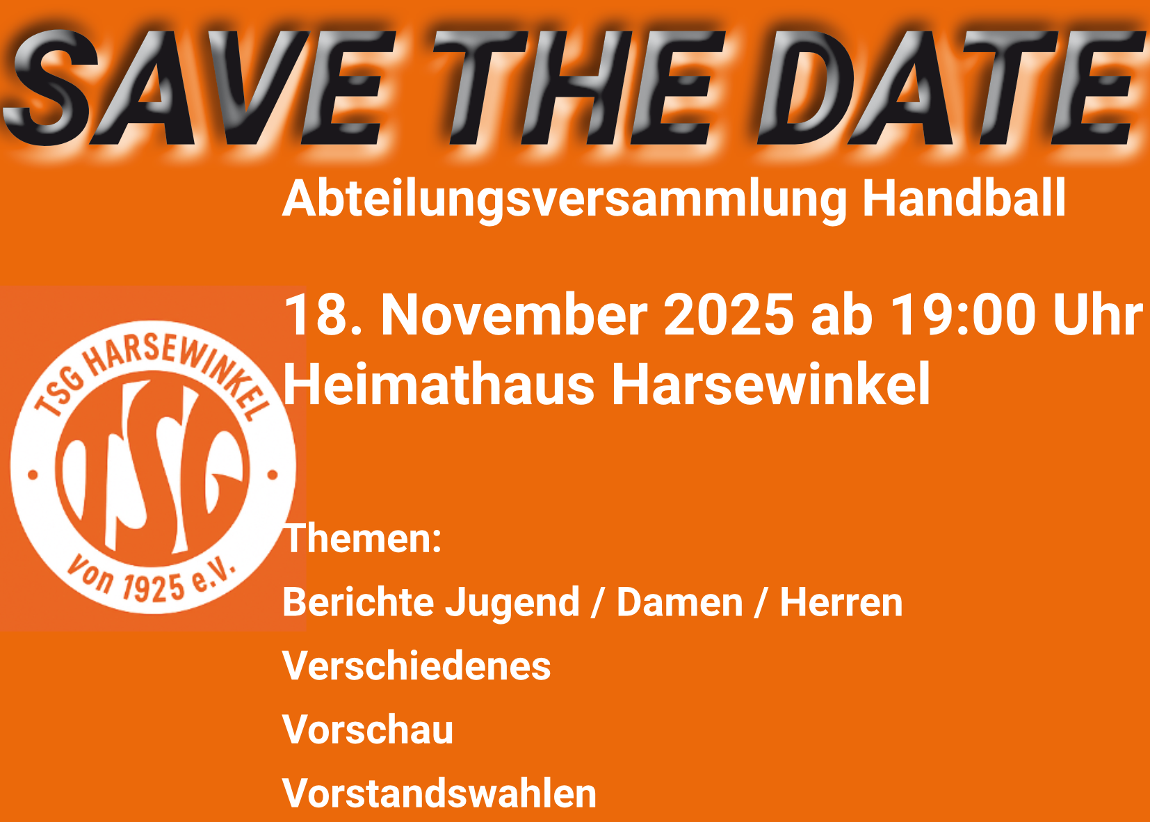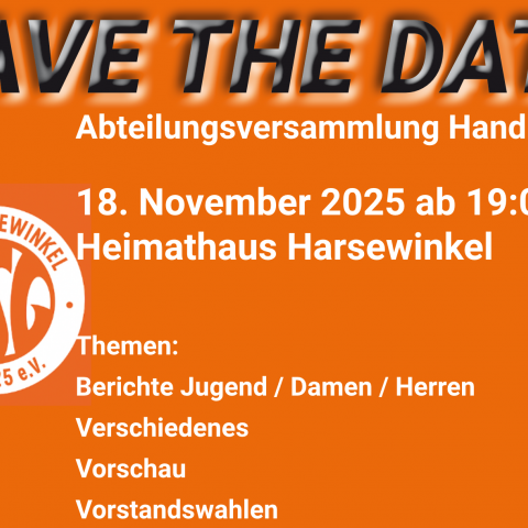 Die Handballabteilung lädt zur Abteilungsversammlung ein: 18. November ab 19:00 Uhr im Heimathaus - Harsewinkel /div>
