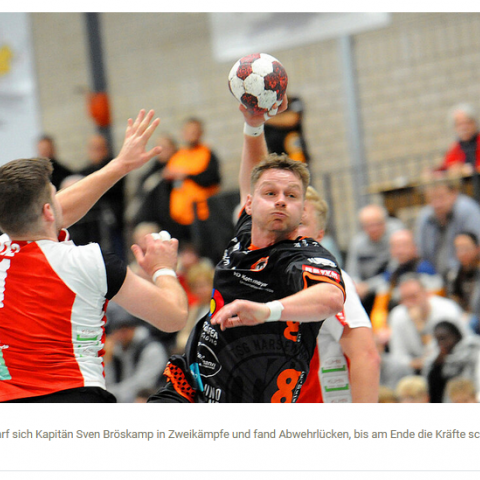 Dazu zählten im Rückraum Heiner Steinkühler, Sven Bröskamp und Stefan Bruns und auf Linksaußen Moritz Eichelsbacher. Lediglich Lars Engelhardt am Kreis und Kösters auf der rechten Außenbahn zählten zur üblichen ersten Sechs. Marlon Meyer und Jan Grüger kamen gar nicht zum Einsatz, während Julian Borren (krank) fehlte. „Diese Entscheidung war zu 120 Prozent richtig“, sah sich der Trainer durch den unermüdlich in die Zweikämpfe gehenden Bröskamp, dem mit spektakulären Treffern (Rückhand, Dreher) das Publikum begeisternden Kösters oder auch dem fünfmal erfolgreichen Bruns bestätigt.