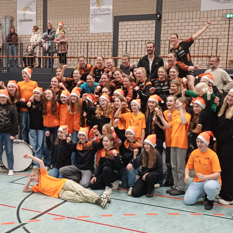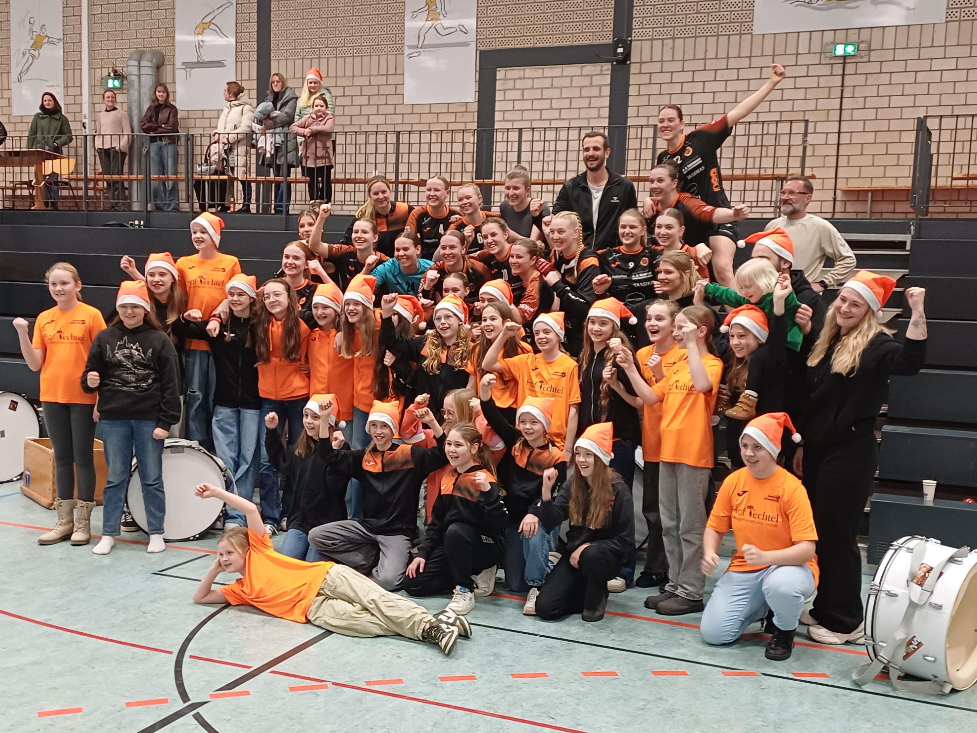 Beim Spiel wurden sie tatkräftig von der weiblichen D-Jugend unterstützt, die kamen von ihrer Weihnachtsfeier aus der Mehrzweckhalle, nach dem Spiel entstand unser Foto.