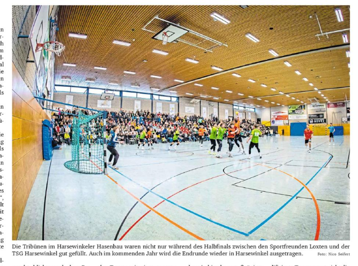 Zum ersten Mal richtete die TSG Harsewinkel am Sonntag die Endrunde des Kreispokals aus. Zuvor hatte die Veranstaltung zehn Jahre lang in der Sparkassen-Arena in Versmold stattgefunden. „Wir haben uns sehr über den Zuschlag gefreut und wollten es entsprechend gut machen“, sagte Kalze. In der Hand hielt er noch sein Mikrofon, mit dem er das Turnier als Sprecher begleitet hatte. „Ich würde nicht sagen, dass wir Bammel vor der Verantwortung hatten, aber Respekt“, meinte er.