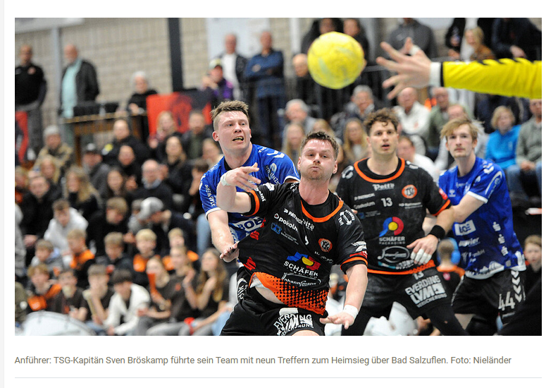 Doch mit Umstellung in der Abwehr – so bearbeitete nach Wiederanpfiff Alex Engelhardt den starken Linkshänder Nick ter Duis und Paraden von Maik Schröder bekam die TSG die Partie in den Griff. Beim 20:20 glichen die Gäste in der 47. Minute zum letzten Mal aus. In der Crunchtime setzte sich Harsewinkel beim 24:21 (natürlich durch Bröskamp) erstmals auf drei Tore ab. Salzuflen kämpfte, doch dem dezimierten Kader gingen dann auch die Kräfte aus, während die TSG auch dank offener Manndeckung in Überzahl besser ins Tempospiel kam.