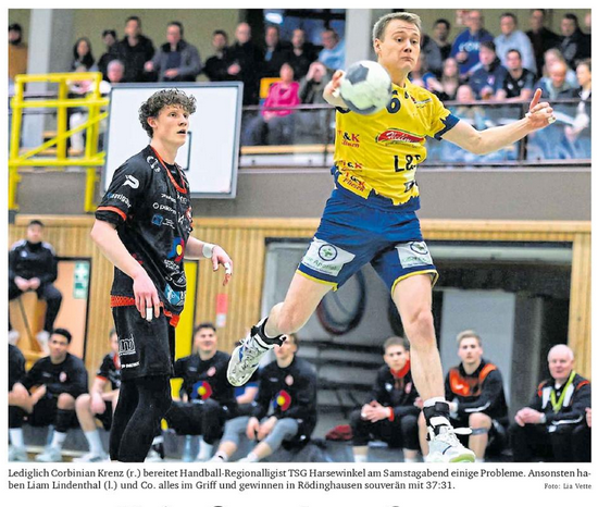 Mit zwei Siegen im Rücken war die TSG Harsewinkel am Samstag zu einem weiteren vorentscheidenden Spiel im Abstiegskampf der Handball-Regionalliga bei Mitkonkurrent CVJM Rödinghausen angetreten. Sie hat diese Aufgabe verdient und über weite Strecken souverän mit einem 37:31 (17:12)-Sieg gelöst.