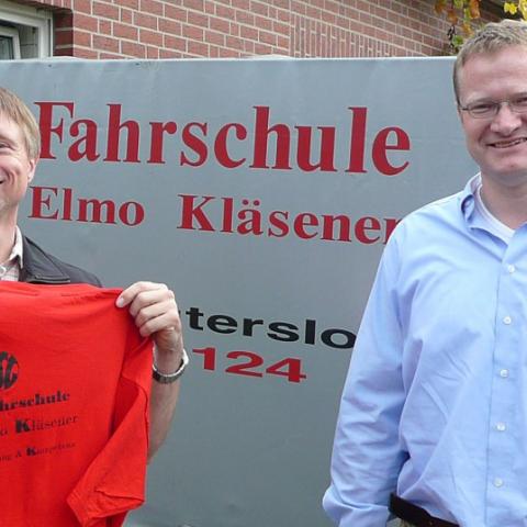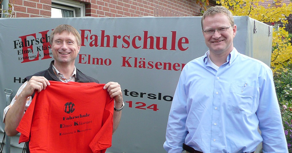 Elmo Kläsener (auf dem Bild links) hatte in diesem Jahr das Aktions T-Shirt gesponsert. Dafür bedankte sich der Abteilungsleiter Burkhard Schlee-Borren noch einmal ganz besonders für die großzügige Spende.