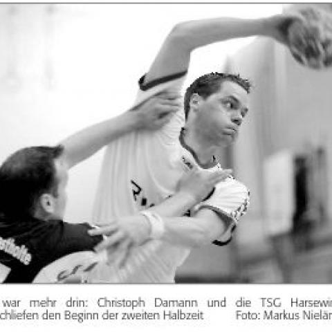 HANDBALL: 25 starke Minuten haben für die Handballer der TSG Harsewinkel nicht gereicht, um beim TuS Brake etwas Zählbares mitzunehmen. So verlor das Team von Trainer Holger Beck nach guter erster Hälfte am Ende dennoch deutlich mit 20:27 (11:12). »Wir hatten wirklich die Chance, etwas zu holen. Aber leider haben wir es versäumt, in den entscheidenden Situationen nachzulegen«, haderte Beck mit den nach dem 5:3-Zwischenstand vergebenen Siebenmetern und Großchancen. Wären die genutzt worden, hätte dies einen deutlichen Vorsprung zur Pause bedeutet.