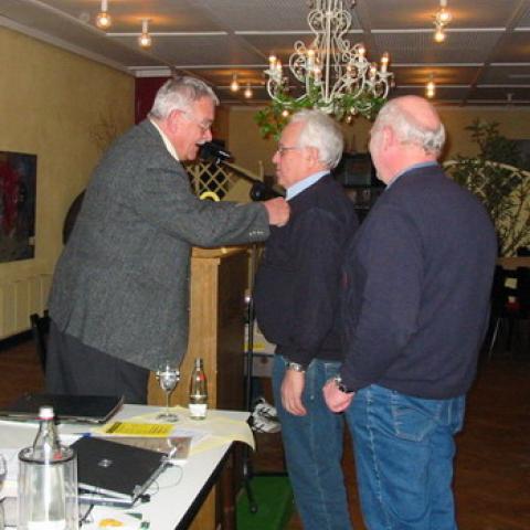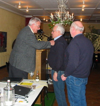 Hier wurden Werner Lemmel und Josef Raubart mit der goldenen bezieungsweise silbernen Ehrennadel des TSG ausgezeichnet. Beide setzen sich seit Jahren für die Handballabteilung ein. Sowohl als Zeitnehmer als auch in anderen Bereichen sind beide immer zur Stelle, wenn es etwas zu tun gibt.