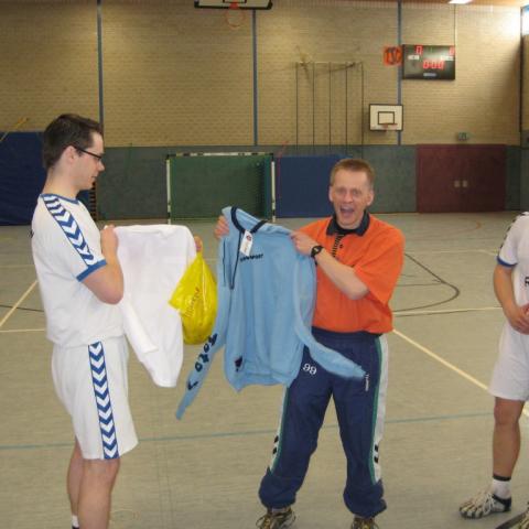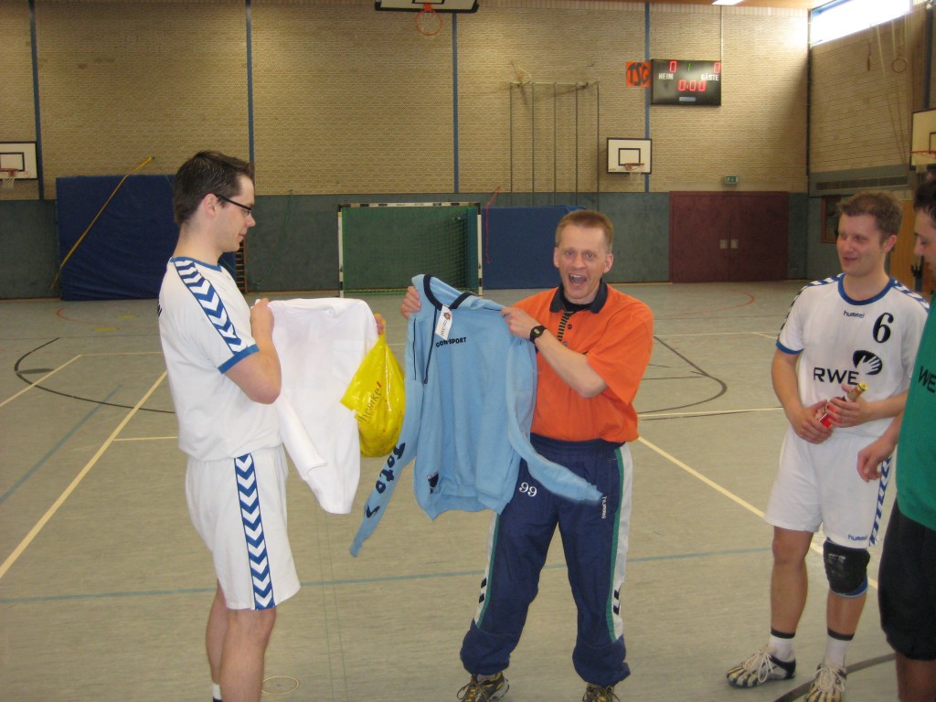 Vor dem Sieg gegen Detmold-Hiddesen wurden von der 1 Mannschaft der Trainer Holger Beck und die Spieler Markus Kordein , Christian (Schnulli) Schulmann und Simon Klima verabschiedet. Holger Beck hat bei der TSG in dem Jugendbereich eine neue Tätigkeit aufnommen. Während Simon bereits aus beruflichen Gründen nach Frankfurt gezogen ist , werden Schnulli und Markus aus gesundheitlichen und privaten Gründen kurzer treten und unsere 2 Mannschaft verstärken.Stellvertretend für und von der 1. Mannschaft überreichte Kapitain Christoph Dammann bedruckte T-Shirts und leckere Fruchtsäfte und bedankte sich bei den Sportskameraden für den geleisteten Einsatz.
