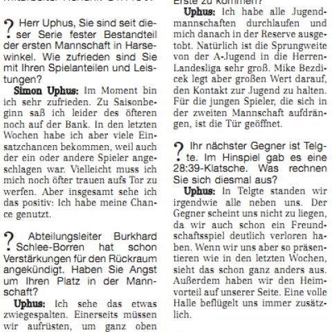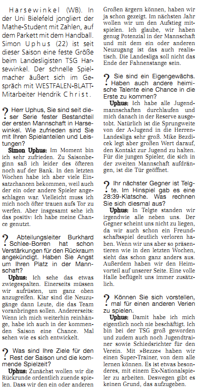 Westfalen Blatt vom 23.02.11 Youngster Simon Uphus steht Rede und Antwort