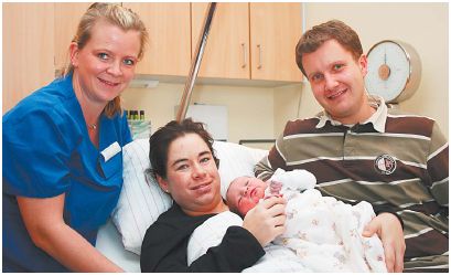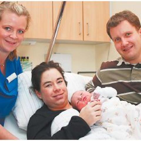 »Er war damit zehn Tage über dem errechneten Termin«, sagte Hebamme Anke Kramer. Auf die Welt gebracht hat Nadine Wolfes aus Harsewinkel ihren Sohn mit Hilfe von Dr. José Goncalez.