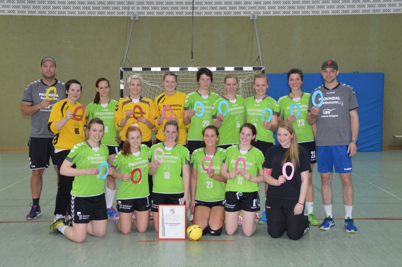 „Wir haben es geschafft.“ hört man es am Samstagabend durch die Saerbecker Halle jubeln. Nach einer sehr fokussierten und disziplinierten Saison stehen wir mit einem Punktekonto von 44:0 vor unserem Aufstieg in die Verbandsliga. „Verlustpunktfreier Aufstieg - das gelingt nicht vielen Teams in Deutschland.“ freut sich Mühle über diesen besonderen Erfolg. Indes verärgert ist er über die Spielabsage für den eigentlich letzten Spieltag vom SC Greven, die uns den gebührenden Abschied in eigener Halle versagt. „Das ist wirklich schade für das Team und die Spielerinnen, die verabschiedet werden müssen.“ ärgert er sich. Das Ende einer langen, anstrengenden Saison spiegelt auch die Partie beim abstiegsgefährdeten SC Falke Saerbeck wider. „Die Luft ist raus.“ resümiert der Coach die Leistung am Samstagabend und blickt damit ebenso auf eine „schlechte Trainingsbeteiligung“ in den letzten Wochen. „Wir genießen gerade die letzten Wochen, das ist okay – anschließend muss aber mal wieder eine klare Ansage her.“ äußert Mühle die Sorge fehlender Einstellung seiner Damen für die Verbandsliga, in der „ein anderer Wind weht.“ Als Glanzpunkt des Spiels feiert Clara Meier zu Wickern im letzten Saisonspiel nach langer Verletzung ihre Rückkehr und verwandelt sogleich vier Strafwürfe.