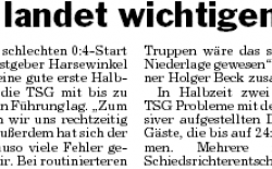 Die Harsewinkler Landesligahandballerinnen mussten vor dem Spitzenspiel am Sonntag die erste Saisonniederlage 21:15 (14:6) gegen TB BUrgsteinfurt hinnehmen. Folglich rangiert das Team von Thorsten Wiemann nun auf Platz 2. Der neue Tabellenführer, Warendorfer SU, ist der nächste Gegner beim Heimspiel